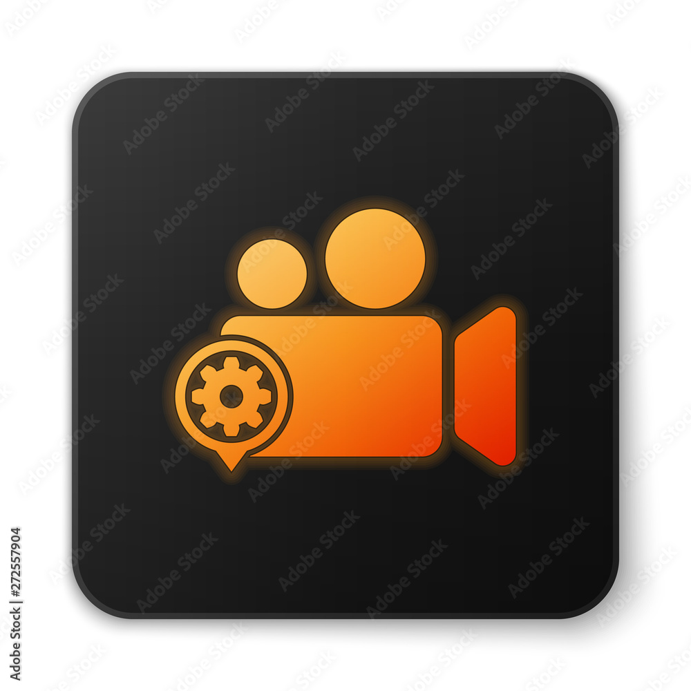 Orange Glowing Movie Or Video Camera And Gear Icon Isolated On White Background Adjusting App Service Concept Setting Options Maintenance Repair Fixing Black Square Button Vector Illustration Stock Vector Adobe Stock